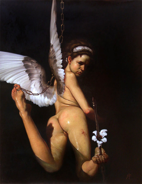 Roberto Ferri is a young Italian artist whose work seems to be inspired by Romanticism and Baroque art a la Caravaggio. This tickles my fancy. I love to see this style come out of someone who was born in 1978.