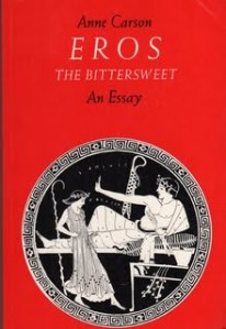 This is the preface for Anne Carson’s book “Eros: The Bittersweet.” I began reading it on the bus this morning and after reading this passage I had an intense lightbulb moment. Not that I really learned anything… it’s just that I relate to experience through metaphor more than anything… and this just happens to be a really good metaphor: